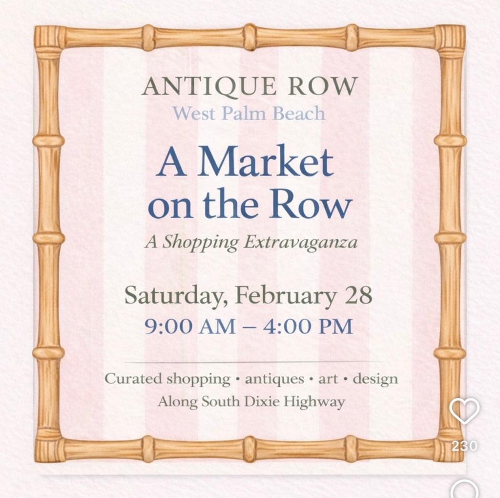 We are half-way through our Winter Season in West Palm Beach. Sales have been good many of the storekeepers tell me. I did a quick tour of some of the shops on the row and here is what I learned.